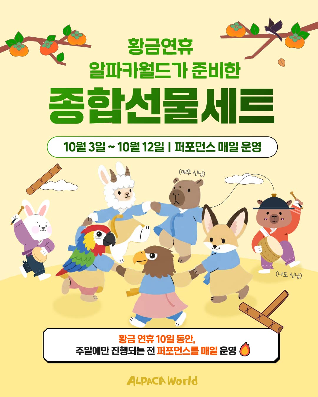 황금 연휴 기간, 전 퍼포먼스 매일 운영