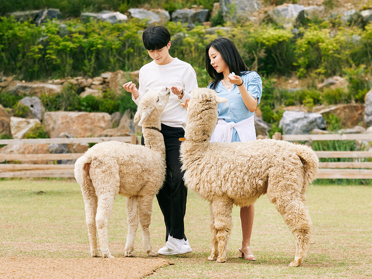 알파카들에게 맛있는 먹이도 줄 수 있어요.