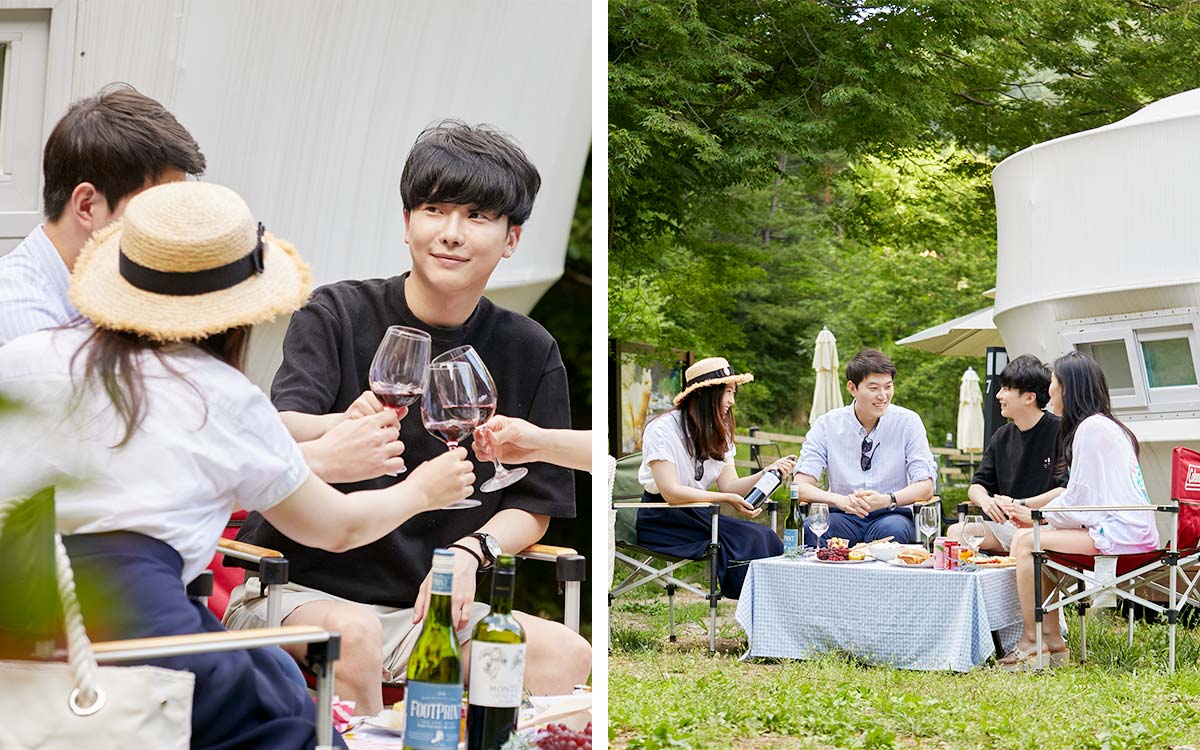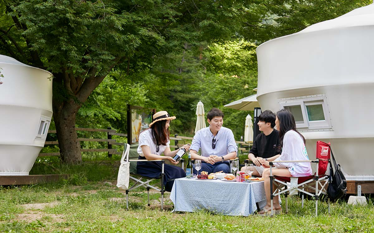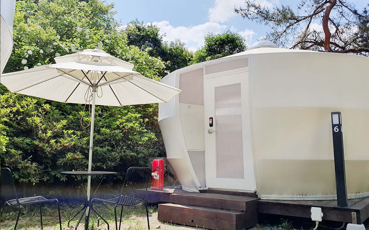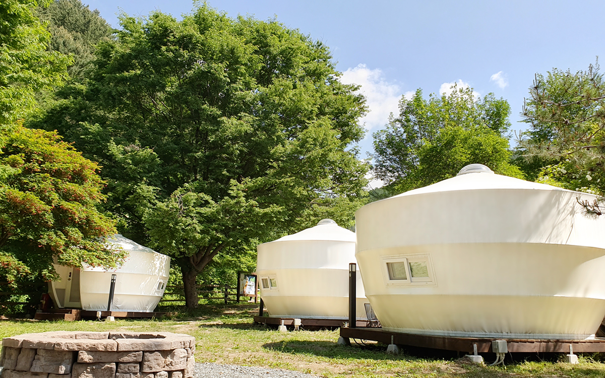 캠핑돔마다 에어컨이 설치되어 있어 무더운 여름에 시원하게