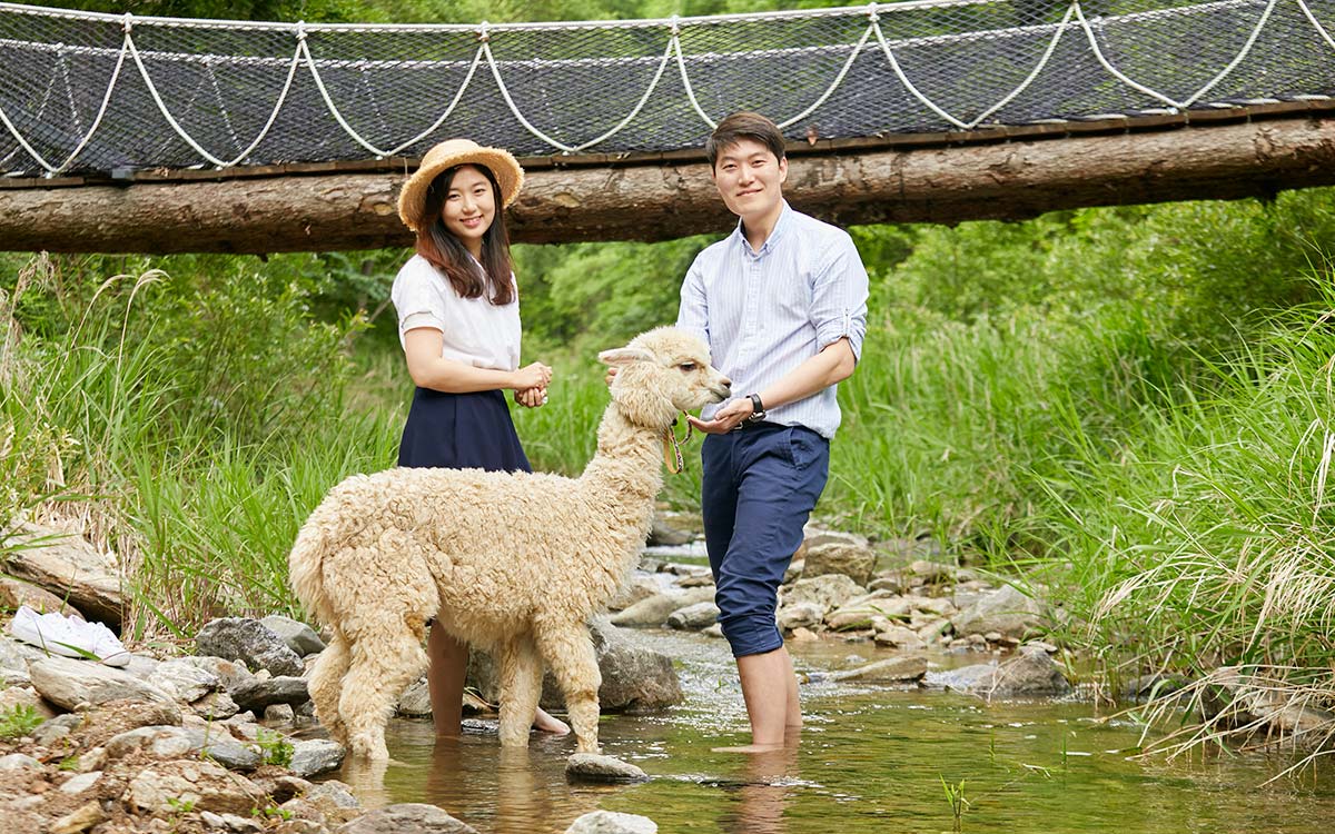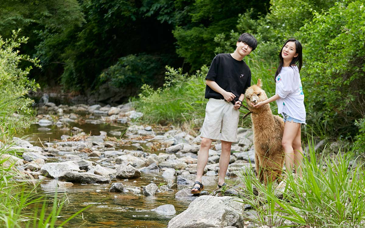 시원한 계곡에서 알파카와 함께 물놀이를 즐기세요